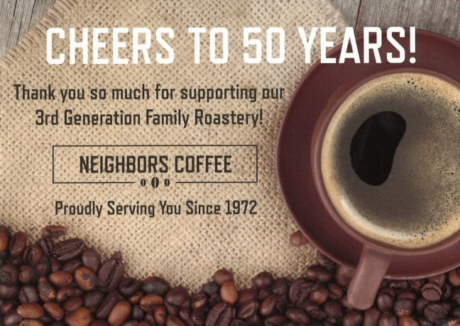It all started in 1972 with a dream of a father and two sons wanting to bring the highest quality coffee available to people at an affordable price. For three generations, the Neighbors family has worked tirelessly pursuing the best tasting cup of coffee. A cup we are proud to serve family, friends, and neighbors in our own homes.